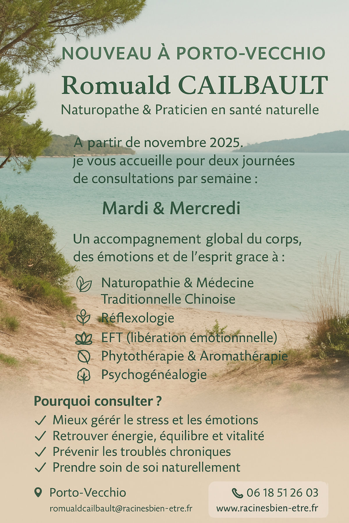 À partir de Novembre 2025, je vous accueille chaque Mardi et Mercredi pour des consultations dédiés à votre bien-être global.